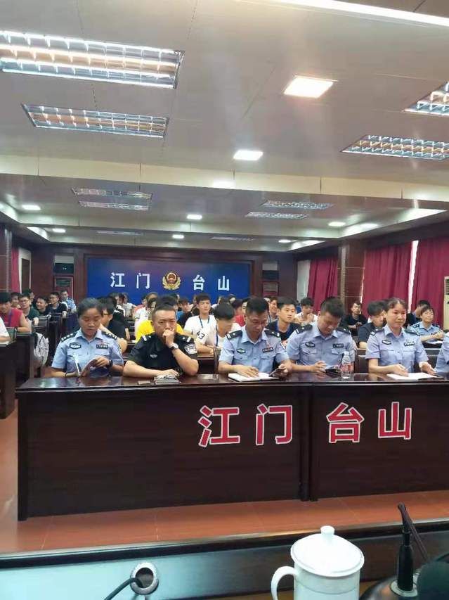台山市公安局党委委员、政工室主任伍植培,政工室副主任廖灿球,中南财经政法大学刑事司法学院副教授章昌志出席本次会议,中南财经政法大学赴台山市实习分队35名队员、甘肃政法学院实习分队队员和实习分队的各个警种、部门、队伍的负责警官参加了会议。