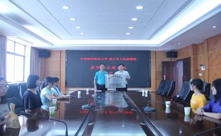 上午11:00,刑事司法学院与武穴市人民检察院“教学研共建基地”签约挂牌仪式在武穴市人民检察院举行。刑事司法学院副院长董邦俊教授、带队教师何正泉老师、武穴市人民检察院副检察长张伟,政治处主任郭选林出席仪式,刑事司法学院十名实习同学参加仪式。