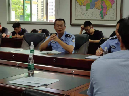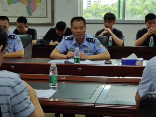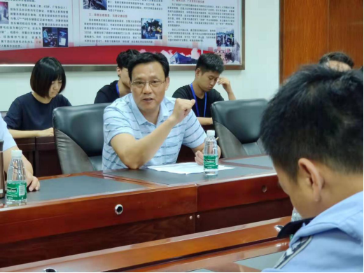 随后,台山市公安局廖灿球副主任讲话,对同学们二十多天的实习工作予以认可,鼓励同学们对台山市公安局提出建议,从而为后半段实习生活做好后勤保障。