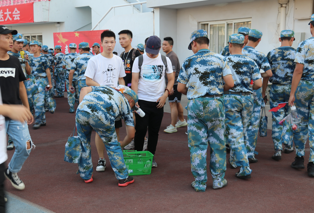 军训活动暂告一段落时,我院团学组织成员将精心准备的饮料递给每一位参训新生。学院领导老师与学生干部一道,把精心准备的饮品递给每一位新生,并勉励他们坚持训练,牢记“刑司刑司,扬我雄姿,鳌头独占,勇夺桂冠”的刑司口号。