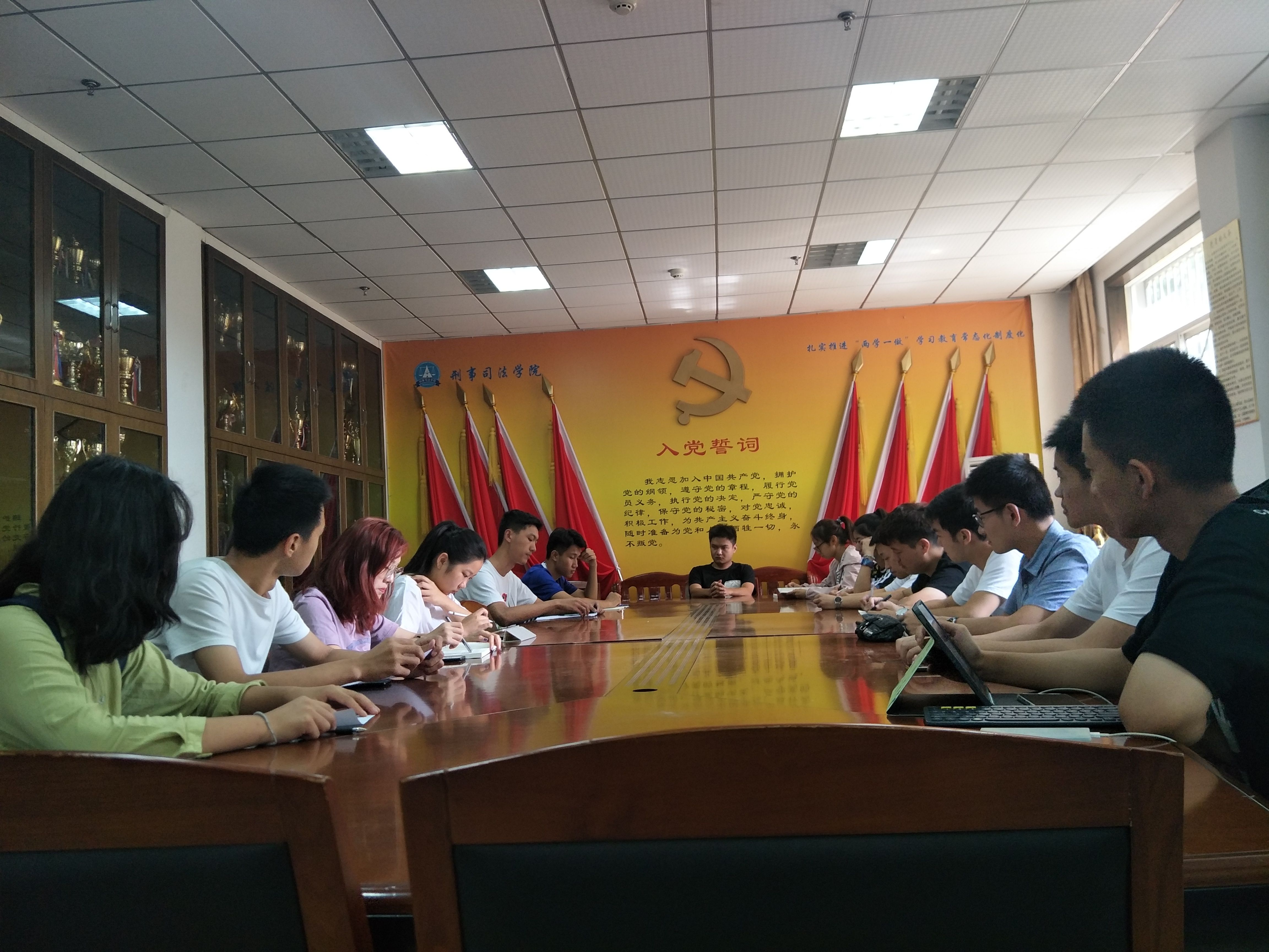 (通讯员 朱嘉颖、马一新)9月24日中午,我校国旗护卫队红旗党支部在文治楼一楼会议室组织召开九月份支部主题党日活动。国旗护卫队党支部17、18级预备党员、发展对象和积极分子参加了此次支部活动,会议由国旗护卫队党支部负责人朱嘉颖主持。