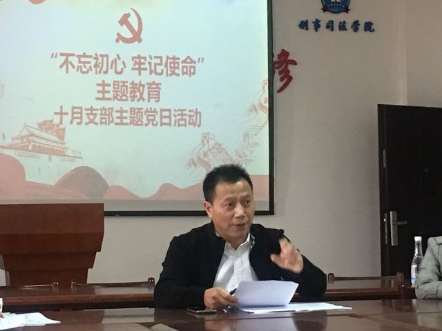 新闻网讯(通讯员刘宇)为不断夯实学院基层党支部建设,扎实开展“不忘初心、牢记使命”主题教育重点工作,10月17日下午16:00起,在文治楼二楼会议室,学院行政教工党支部集中开展10月支部主题党日活动。院党委书记李宏同志为支部成员讲授《不忘初心,服务育人》专题党课。本次活动由院行政教工党支部书记陆薇同志主持。