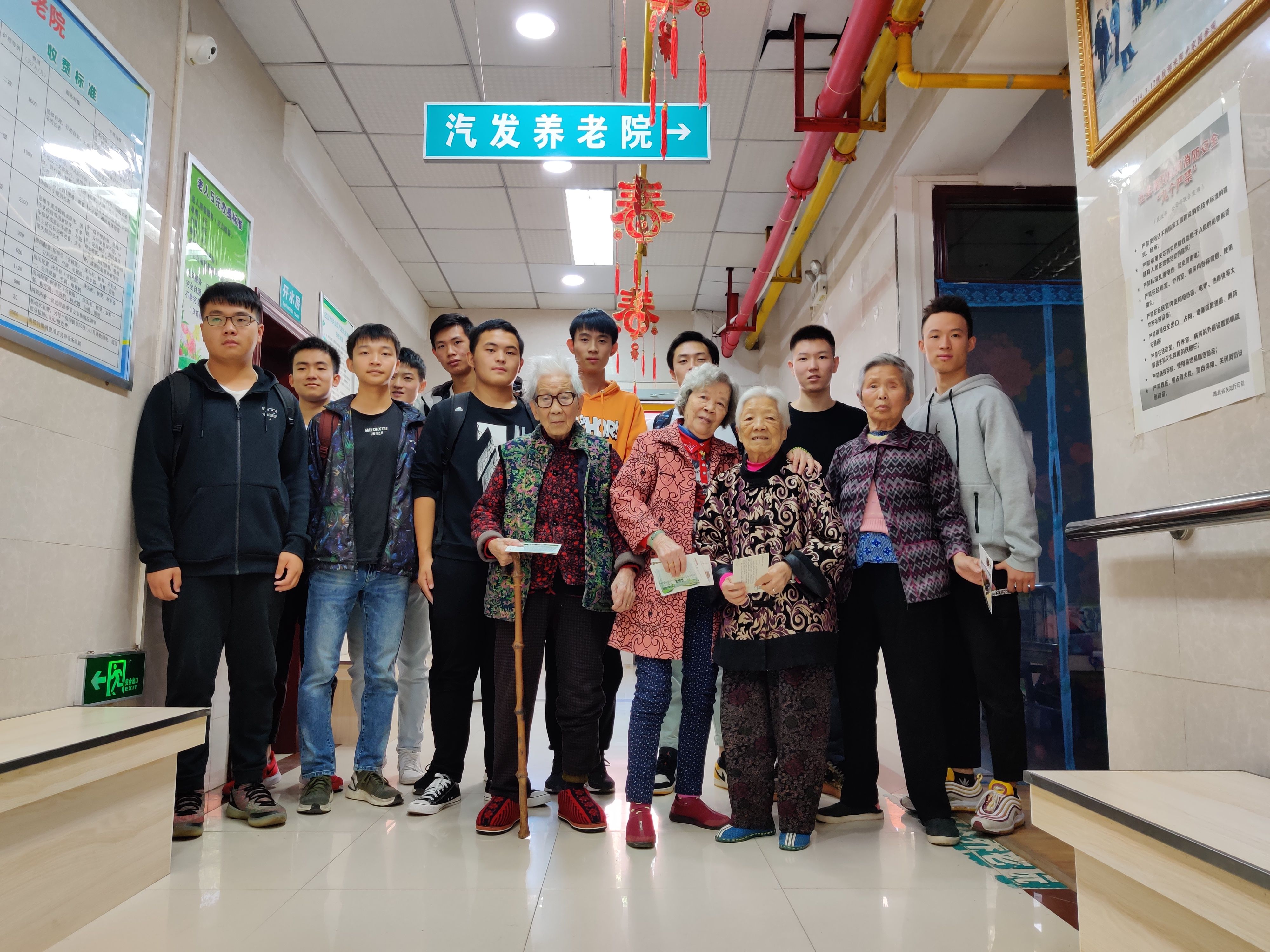上午9时,志愿者们携带着探望物资来到了汽发社区养老院。养老院的老人们在一起享受着和煦的阳光,对突然到访的志愿者感到十分惊喜。志愿者们先将事先准备好的水果和衣服分发给各位老人,之后便表演起了准备许久的特别节目,正逢新中国成立七十周年,志愿者们一起饱含深情地演唱了歌曲《我和我的祖国》,朗诵了毛主席的诗《七律·长征》,铿锵有力的朗诵在带动现场气氛的同时,也使老人们回忆起自己的峥嵘岁月。