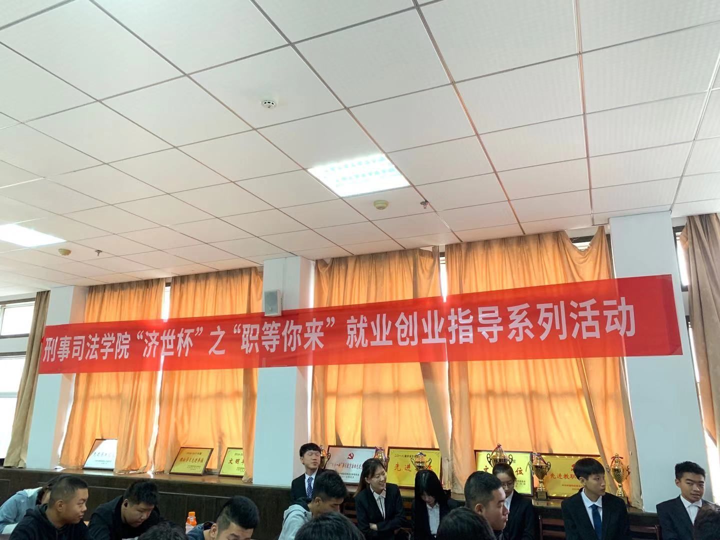 新闻网讯(学生记者 王海帆 陈大伟 编辑 石玥)10月26号上午9点,刑事司法学院“济世杯”之“职等你来”模拟就业比赛的决赛在文治楼二楼会议室举行。来自理根教育的何俊老师、李宜临老师;中公教育的宋超群老师、诸葛清老师参加本次活动并担任评委