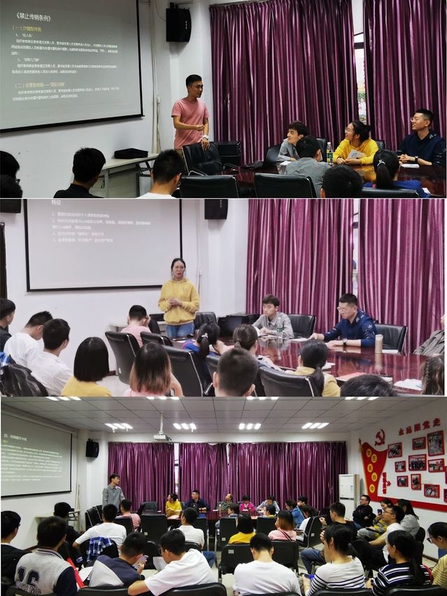 通过前期的充分准备,精心挑选生动案例,刑法学硕士生蔡铭林、邹立和万依恒三位党员同志利用课堂所学,为社区的群众们详细的介绍了网络诈骗的常见模式,包括传销活动、电信诈骗和抽奖式诈骗等。蔡铭林同学利用家乡所在地区的一起传销案件作为切入点,直入主题,并向社区群众生动解释了“庞氏骗局”的由来,邹立和万依恒同学则准备了大量的现实发生的案例,用案例分析的方式,将法律知识分享给了大家。三位党员同志的讲解浅显易懂、形象生动,赢得各位群众热烈的掌声。