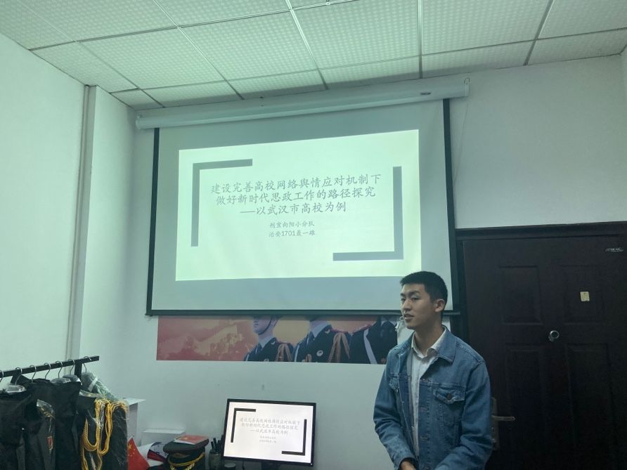 第三位进行报告的是聂一雄,他和他的团队以《建设完善高校网络舆情应对机制下做好新时代思政工作的路径探究——以武汉市高校为例》作为课题。他们通过实地调研和线上调研这两种主要方式,双管齐下,得到了详实的数据和资料,成功结项。
