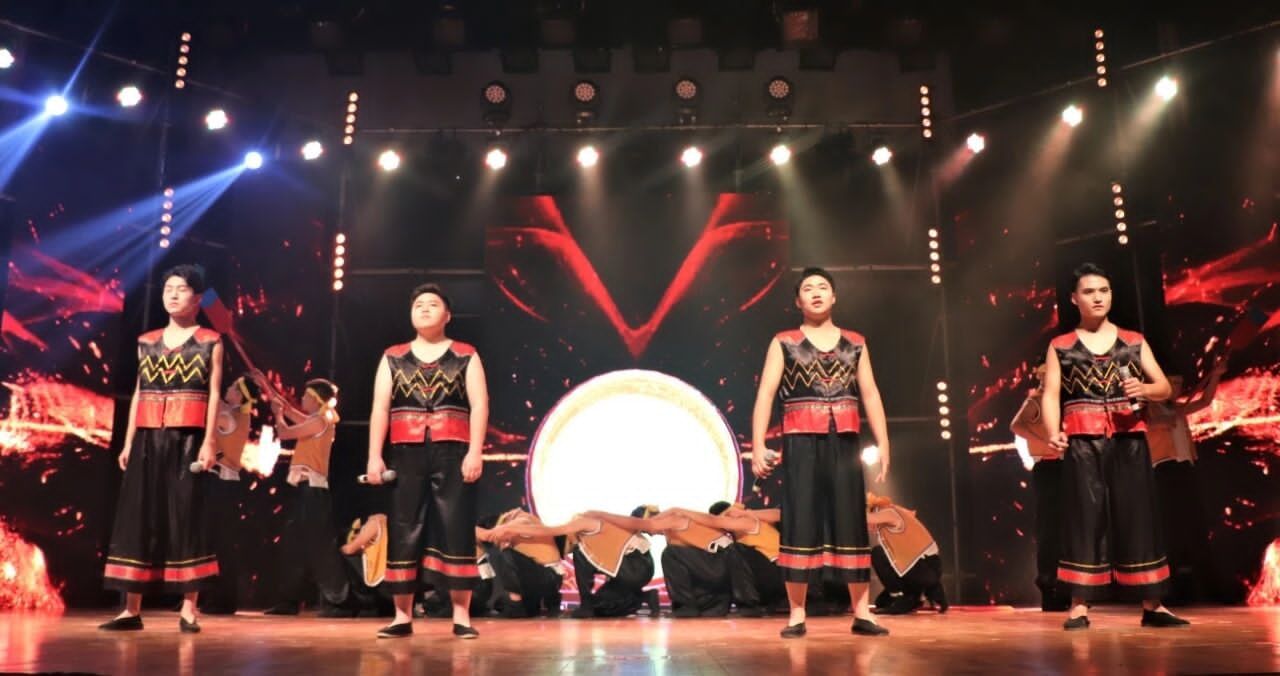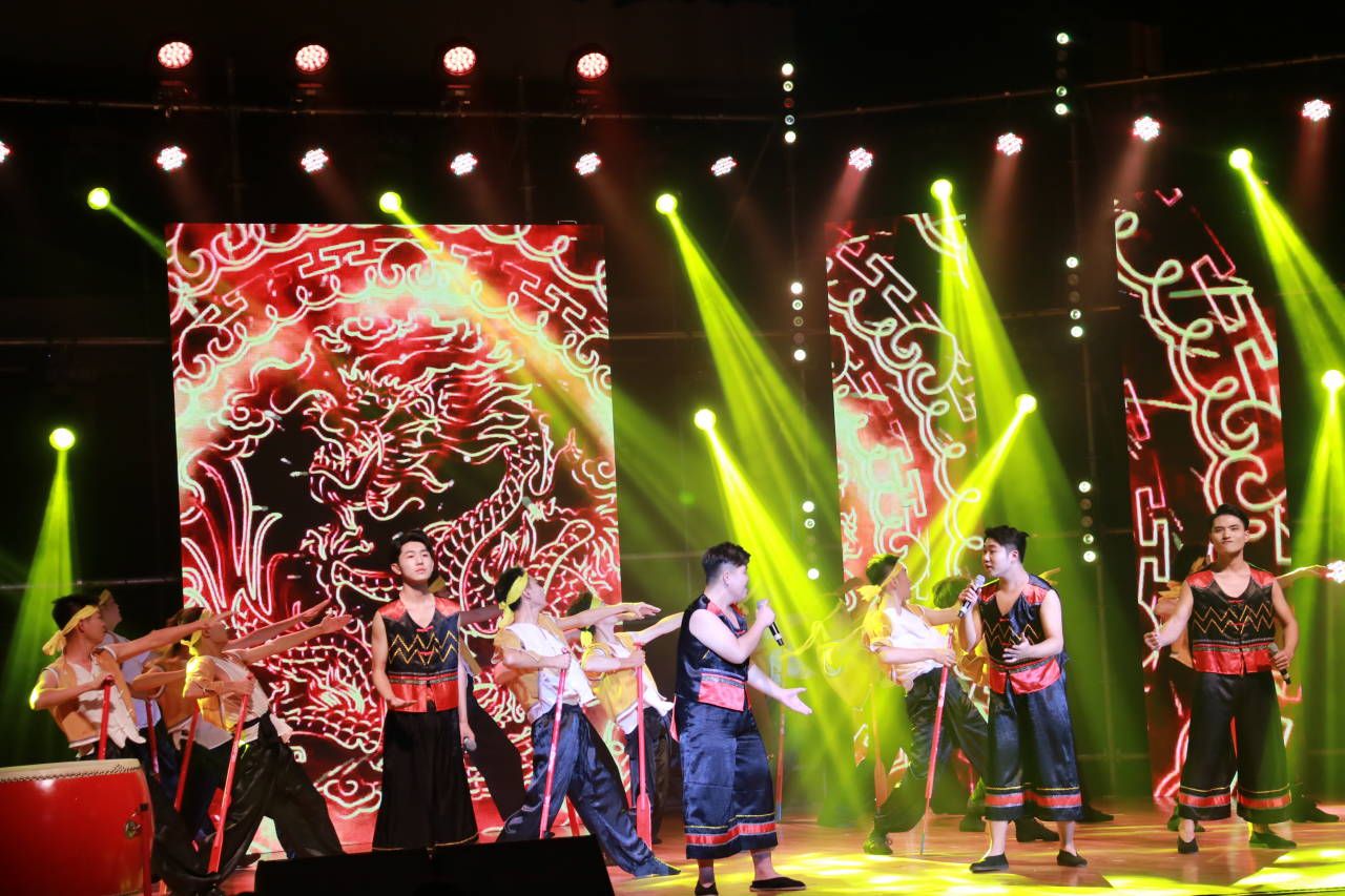 在厚重宏伟的敲鼓声中,在舞蹈团成员的划龙舟伴舞下,由我院李兆洋、雷明中、司元杰、刘威能四位同学带来的《屈原龙舟赋》震撼登场。歌声有时动人,像潺潺流水般浅吟低唱,独具风韵;有时凄美,若露滴竹叶般玲珑作响,耐人寻味;有时浑厚得如雄鹰展翅时的一声长鸣,振聋发聩;有时婉转得似深情交融时的一行热泪,扣人心房。副歌部分感情陡然上扬,具有穿透力的嗓音如泣如诉。血浓于水,情重如山,中华民族的血脉真情,在中华大地上徐徐流淌。最后,在震天鼓声中,一曲收了,留给观众无限的想象空间。