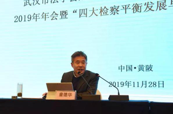 2019年11月28日下午,武汉市法学会刑事法学研究会检察运行机制专业研究委员会年会暨“四大检察平衡发展与刑法的新挑战”2019年培训班在武汉黄陂举行。本次年会由中南财经政法大学刑事司法学院和武汉市黄陂区人民检察院联合主办。我院副院长、博士生导师童德华教授,周凌副教授,刑法学系主任杨柳副教授,治安与边防管理教研室副主任袁建伟副教授,刑法学教研室副主任丁友勤副教授,研究生工作办公室吕兰老师,以及刑法学一年级博士生和部分硕士生代表参加了本次会议。