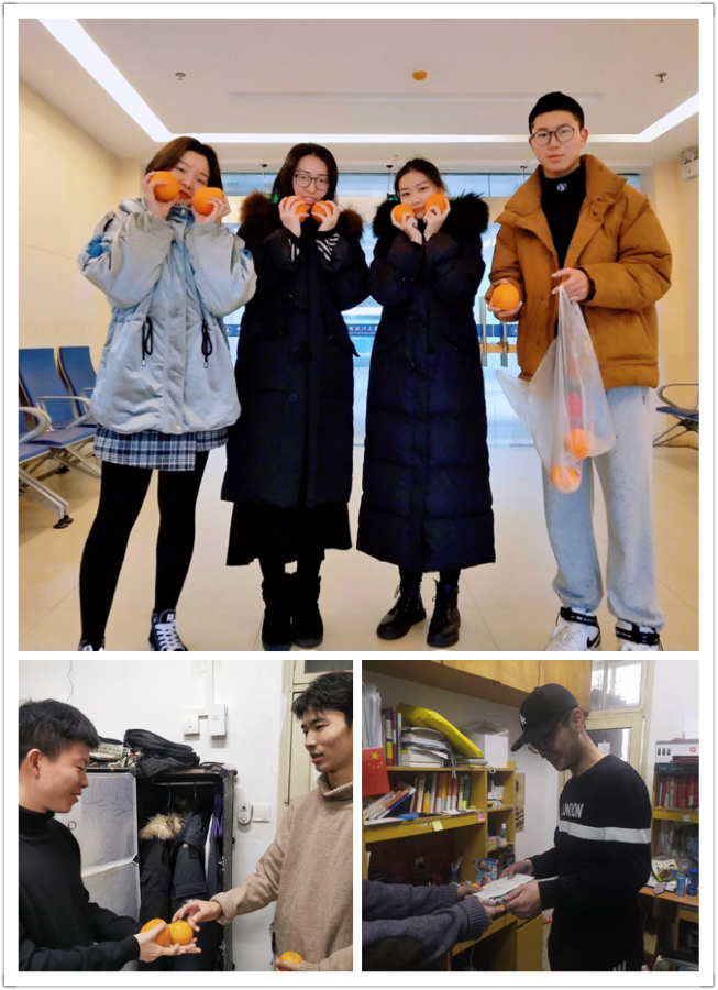 待到晚上,大家都回到宿舍后,各班负责人走进各个寝室,为每位同学“送橙上门”、“送福上门”。许多同学收到橘子后很是感动,纷纷表示感谢辅导员和年级、班级同学对他们的鼓励,同时也表达对几天后的考研初试充满信心,同时表态他们一定会全力以赴,搏一个光明前程。不少同学收到礼物后,对其包含的美好寓意十分赞赏,甚至有同学收到橙子、明白寓意后就已经“磨刀霍霍”准备开吃,笑着说要第一个吃到“成功”。在温馨愉快的氛围中,各班负责人分发了全部的礼物,也与同学们进行了深入的交流,缓解了同学们考研前的紧张情绪。