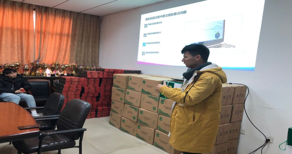 会议开始,周洲简单介绍了社会实践的常识、目的、要求、以及本次寒假需要特别注意的事项:社会实践宣传和安全问题,还提到进行社会实践要实事求是,成果不能太空,不能走形式主义,必须有自己的思考和收获,要能带来一定的社会效益。