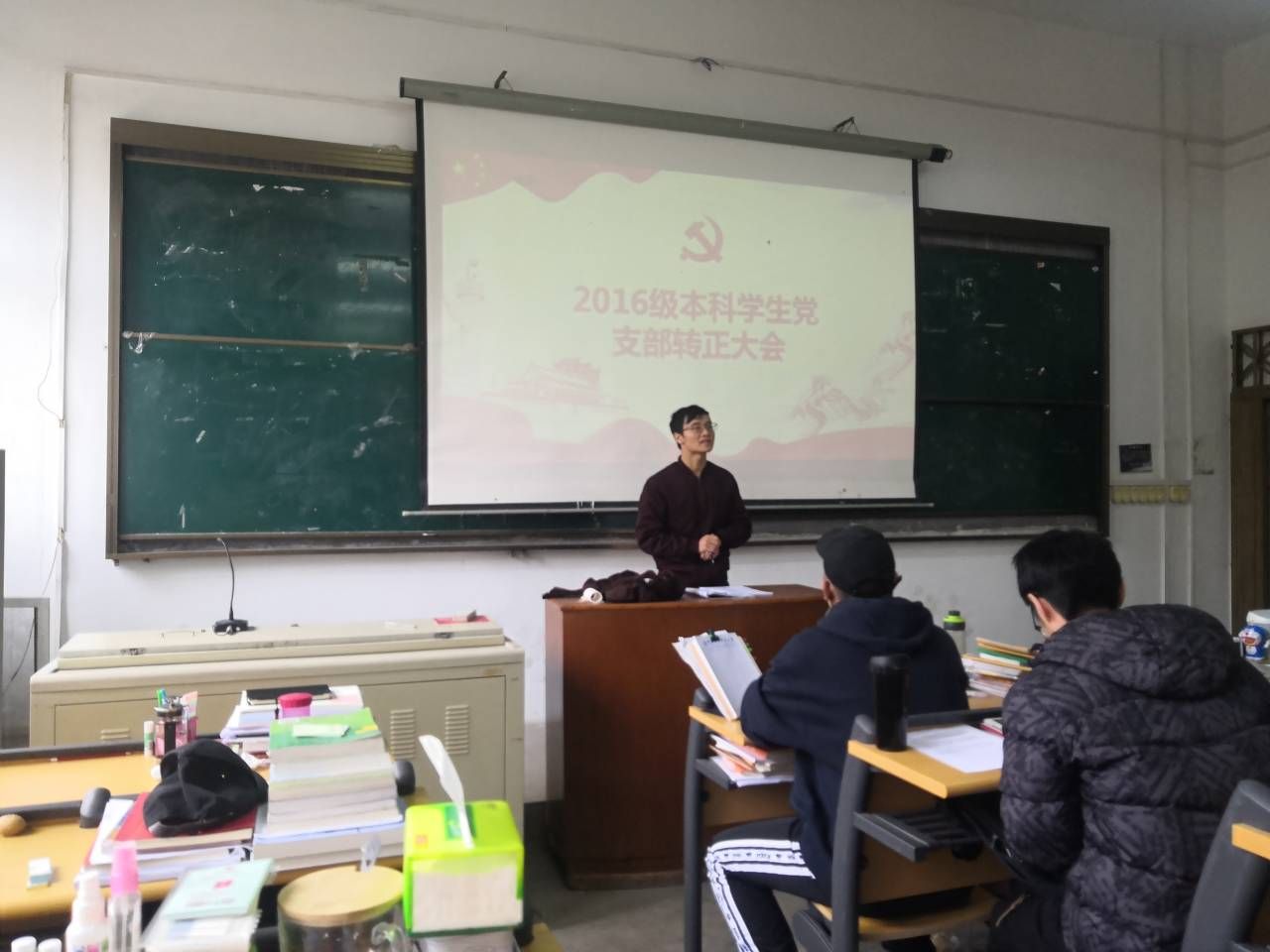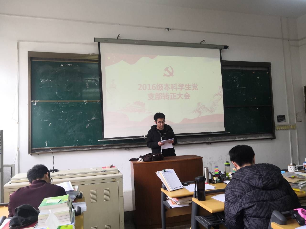2019年12月18日上午9:00, 我院2016级本科学生党支部预备党员转正会议在电教楼201召开。2016级本科学生党支部全体党员参加会议,会议由党支部书记卓张鹏老师主持。