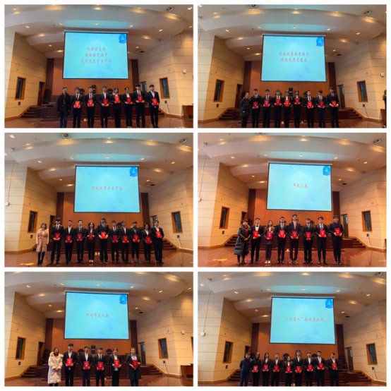 在胡向阳院长的精彩致辞后,大会播放了2019年刑事司法学院团学总结视频,并由卓张鹏老师宣读了刑事司法学院2019年年度“五四”表彰名单。紧接着,李宏书记宣读了刑事司法学院2019年度综合表彰决定,决定授予国旗护卫队等七个团队“年度荣誉团队”称号;授予刑事司法学院分团委组织部纪律监督部等五个组织“年度最佳组织”称号;授予职侦1601班等四个班级“年度优秀班集体”称号;授予王培聪等7人“刑司年度人物”称号;授予陈福临等8人“年级之星”称号;授予向志远等21人“优秀学生干部”称号;授予卢天鸿等16人“三全育人”奖。这些优秀团体与个人,展现出刑事司法学院各团学组织、各级同学顽强拼搏、积极进取、勇攀高峰的精神风貌,是每一位刑司学子学习的榜样。随后,参加会议的学院领导和老师为获奖同学颁发荣誉证书,并与他们亲切合影。
