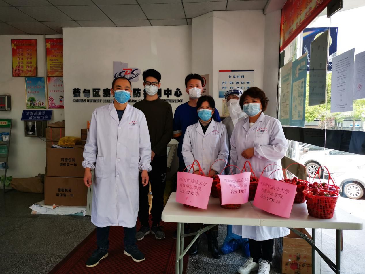 新闻网讯(通讯员 何一帆 孙亚孟)月圆夜,武汉解封!4月8日凌晨,武汉解除离汉离鄂管控措施,江汉关敲响钟声,长江上鸣起汽笛,两岸亮起灯光,感恩疫情期间所有的一线人员。上午,刑事司法学院何一帆、郝龙韬同学代表治安1701班,向武汉市蔡甸区人民医院(协和江北医院)、蔡甸区疾控中心和玉贤街派出所捐赠一批爱心物资,并向一直坚守在一线的工作人员表示感谢。
