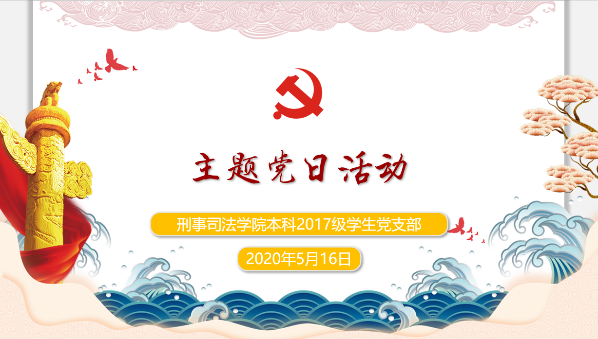 根据上级党委的统一部署,5月16日晚7时,刑事司法学院本科2017级学生党支部在线上组织开展5月支部主题党日活动,全体党员、预备党员58人并吸收发展对象58人参加。