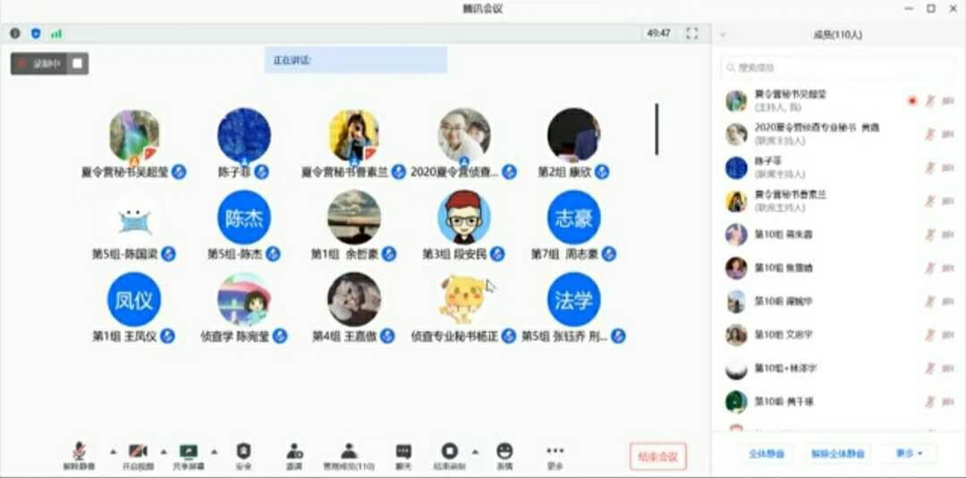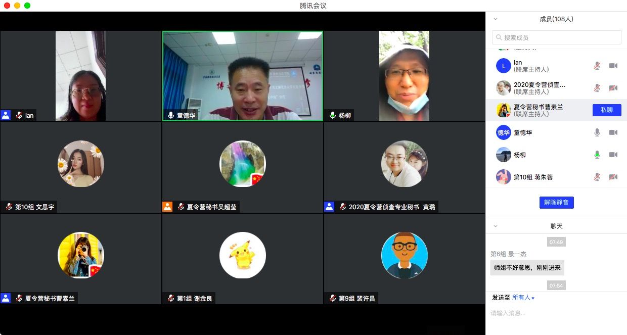 开幕式结束后,全体营员以学科分组各自在线上进行了全天的专业考核。刑法学组采取无领导小组讨论的形式要求营员们对具体案例进行分析讨论,童德华教授、周详教授、程红教授、新任硕士生导师李淑兰老师等评委对营员们进行了综合素质测评。侦查学科以“杭州女子失踪案”为材料要求营员们依次评述交流,杨宗辉教授、董邦俊教授、付凤副教授出席并担任评委。治安学科以专业问答的形式对营员们进行面试,董少平教授、章昌志副教授、梁国良副教授出席并担任评委。各营员们在面试中充分展示了自己的专业积累和优势特长,给老师们留下了深刻印象。