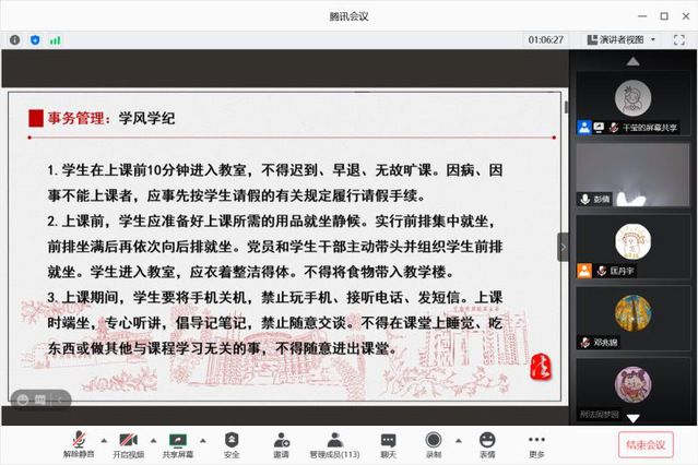 (学生记者:干莹)为做好研究生新生的入学教育工作,助力新生尽快融入新环境、适应新生活,在学院统一部署下,9月18日晚,2020级全体研究生通过腾讯会议线上召开了“不负韶华,逐梦前行”入学教育云班会。
