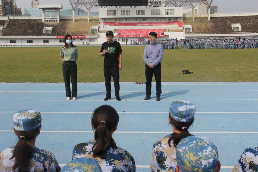 新闻网讯(学生记者 徐淇钰)2020年9月29日上午10点,我院党委副书记万里雪、院学办主任2020级新生辅导员陆薇、院团委书记郭青川及党办老师一行前往新体运动场慰问我院军训新生。