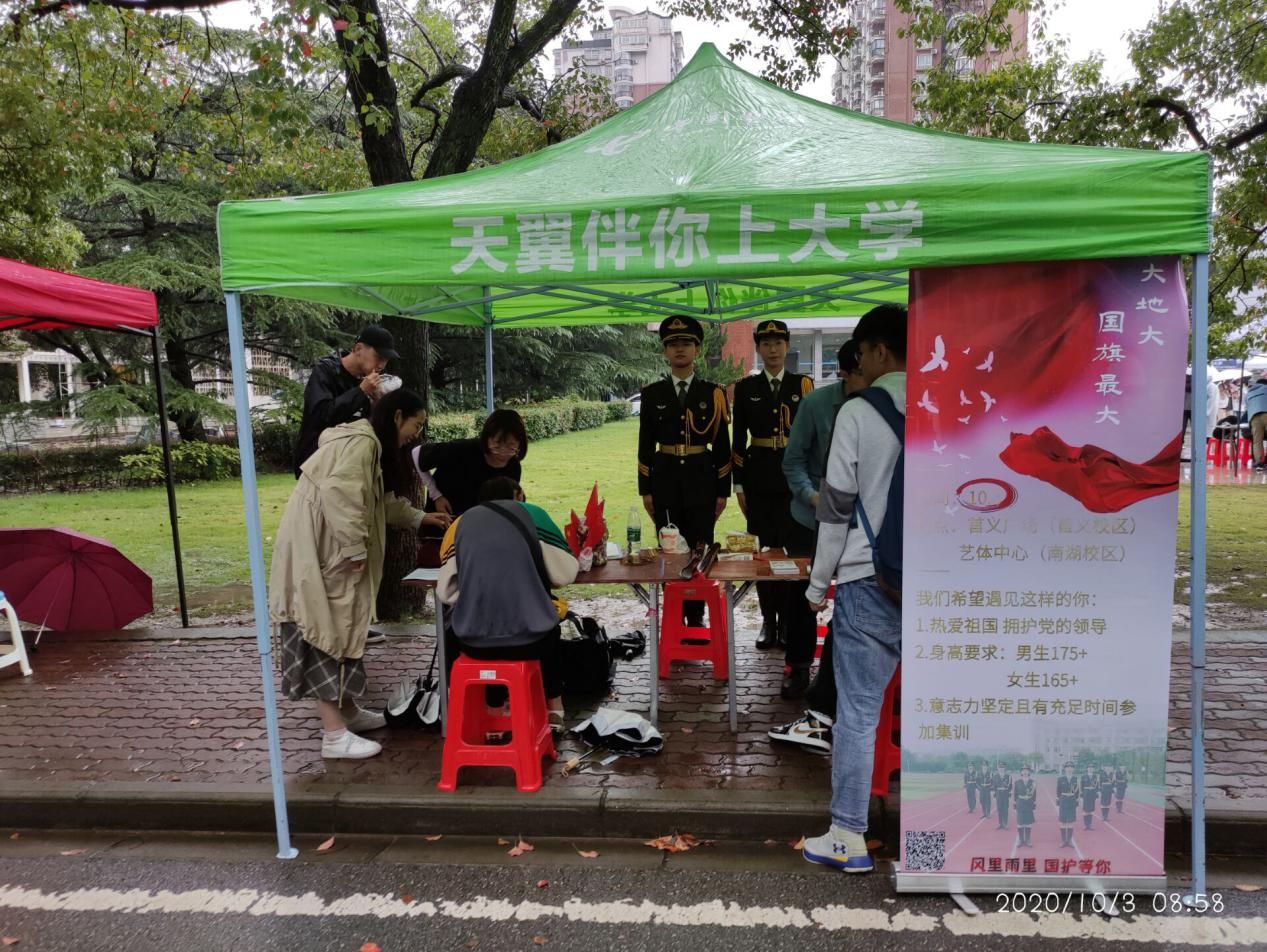 10月3日,中南大国旗护卫队于南湖校区艺体中心和首义校区首义广场分别开设招新摊位,面向两校区全体20级新生招新并解答疑惑。