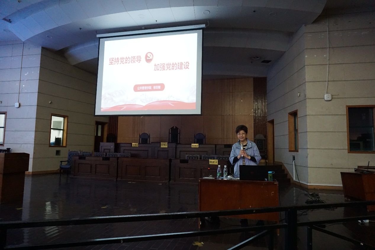 接着徐双敏教授以《坚持党的全面领导,加强党的建设》为题进行了授课,徐教授先带我们回顾了一百多年前那段不堪回首的屈辱近代史,以史为据向我们深入浅出地讲述了中国共产党是如何从无到有,由弱到强地带领中华民族走上实现伟大复兴的光辉道路。并从多角度展开论述了中国特色社会主义制度的优越性,并再次强调,中国共产党的执政地位并非自封,而是历史和人民的选择。