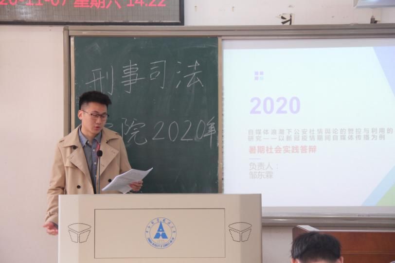 新闻网讯(学生记者 高天乐 凌司阳)2020年11月7日下午14时,刑事司法学院在文澜楼204室举办了2020年暑期社会实践结项答辩会。我院共有6个项目团队参与此次结项答辩会。本次结项答辩会由我院颜丙祺同学主持,学院分团委书记郭青川老师和周洲、陈一凡、李啸天、张诗源、徐宇轩五位同学担任评委。