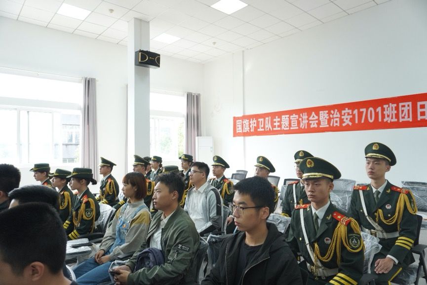 活动的最后,全体成员和嘉宾们合影留念,本次团日活动圆满结束。活动中,治安1701班同学们学习了国旗护卫队青春昂扬的风貌和敬党爱国的精神,树立了正确的就业观、择业观,相信他们能够更有准备、更具自信地踏上征程,让青春在党和国家需要的地方绽放!