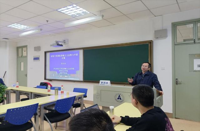 在问答环节中,方向楠博士研究生提出疑问:作为一名普通大学生,限于资料难以获取以及语言障碍等问题,如何开展恐怖主义研究?舒洪水教授作出解答,告诉大家首先要抓好基础,同时注重中外资料结合运用。