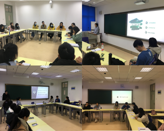 本次例会由彭老师主持,主旨明确,氛围轻松。首先,各部门成员代表分别就本部门整学期的工作收获和经验教训进行简单总结,并对部门未来工作方向进行了详细规划。秘书处围绕工作中存在的报告排版、错别字等问题进行了自我批评,并指出今后工作中会秉持严格谨慎的工作态度,保证格式正确,质量提升。学术部主要围绕本学期成功举办的多次学术活动,例如刘艳红教授刑法讲座,李佳老师现场分享会等,提升了整个部门的策划、组织、协调能力;但同时指出成员临场应对欠缺,在新闻稿撰写上存在与宣传部对接不及时的,问题今后工作需要全面改进。文体部回顾了本学期举办的各类活动指出,在过去的工作中成员沟通协商欠佳,工作进度缓慢,工作成效不突出;同时,详细总结了工作收获,并说明了未来活动安排。宣传部围绕微信推送以及新闻稿的撰写,指出了工作分配和安排不协调的问题,并据此提出了改进措施,以保障宣传部更好的对接其他部门。权益部针对所开展工作,如宿舍卫生评选,防诈骗教育活动等展开总结,指出部门工作形式单一,与同学们缺乏交流,服务工作重点不突出等问题是今后整个部门工作的着力点。