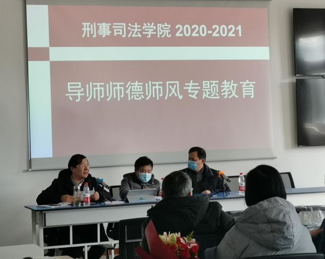 为深入贯彻落实习近平总书记关于新时代师德师风和教师队伍建设的有关讲话精神,贯彻落实教育部、省教育厅和学校关于全面加强师德师风建设的有关文件精神,进一步加强和改进学院师德师风建设,提高学院教职工队伍的思想政治素质和职业道德水平,2021年1月14日下午,我院在文清楼四楼会议室召开了刑事司法学院研究生导师师德师风建设专题工作会议。会议由董邦俊副院长主持,全体研究生导师参加此次会议。