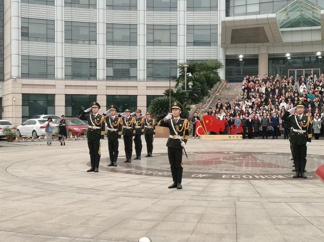 新闻网讯(学生记者 曾昭阳)3月8日清晨,中南财经政法大学国旗护卫队在南湖校区中原楼前举行新学期第一次升旗仪式,金融学院的全体师生参与了此次观礼。