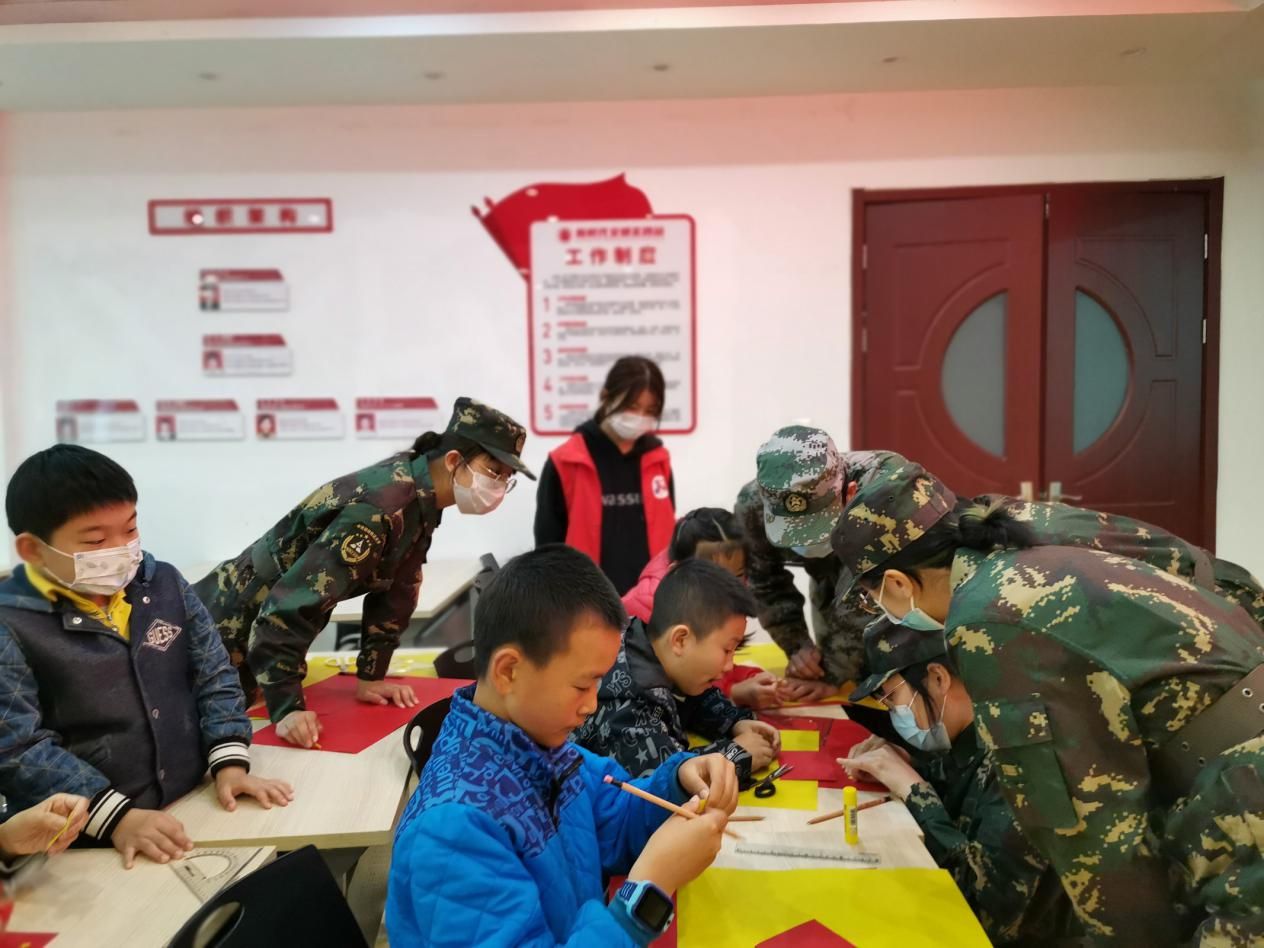 除了静态的知识灌输,活动也有实际的动手操作。青少年在青栀服务队和国旗护卫队队员们的帮助下用卡纸制作国旗,用鲜艳的红色和黄色,按照严格的比例进行裁剪粘贴。最后每人都手持自己制作的国旗与中南财经政法大学国旗护卫队队旗合影。