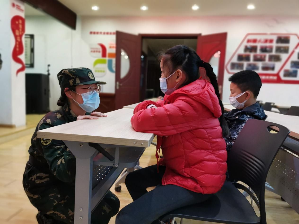 早晨八点,青栀服务队队员和中南财经政法大学国旗护卫队宣讲团代表已抵达博苑社区,提前布置场所。青栀服务队队员身穿红色志愿者马甲,国旗护卫队队员身着作训服,引导青少年进行签到。