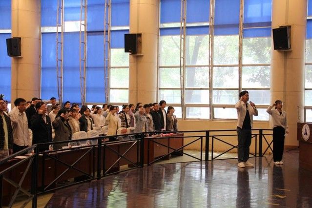 活动在微视频《百年风华》中拉开帷幕,在硕士生2018级刑法学党支部书记庞万腾同志带领下,全体党员重温入党誓词。