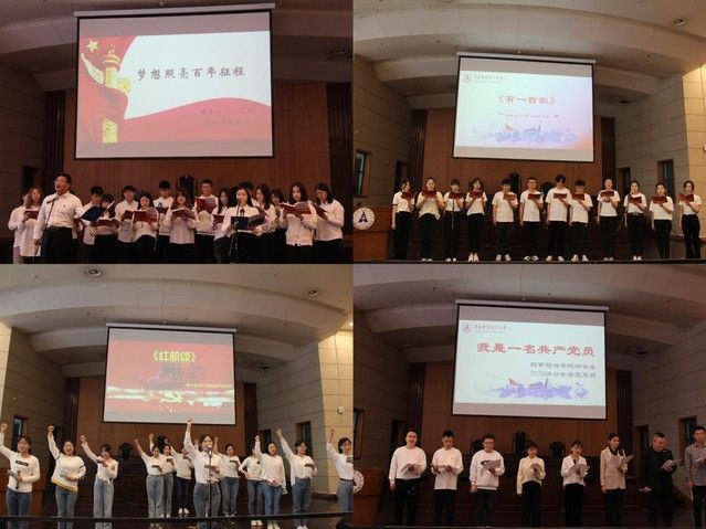 研究生各党支部精心准备、情绪高昂,整场活动高潮迭起、掌声不断。彭倩老师和研究生党员共同带来的开场节目《党旗颂》,慷慨激昂,回顾了中国共产党从南湖出发到领航中国的光辉历史;《青春中国》通过对比生灵涂炭的旧中国与强大腾飞的新中国,讴歌了在中国共产党领导下革命志士不懈奋斗的光辉历程;《信念永恒》坚定有力,带领观众沿着革命先辈足迹进行信仰之旅;《光的赞歌》娓娓道来,诉说着对光的追求与执着,发出向往光明的铿锵声音;《梦想照亮百年征程》铿锵有力,回顾山河破碎、生灵涂炭的黑暗时代,真切表达了新时代青年坚定不移跟党走的万丈豪情;《没有共产党就没有新中国》采用歌声与朗诵相结合的方式,发出百年来颠扑不破的真理之声;《有一首歌》诉说了对党的眷恋与情感,唱响了对党的深情赞歌;《红船颂》深情回顾了建党伟业,汇聚了对中华民族崛起的无比自豪;《我是一名共产党员》感情饱满真挚,把对党的无限热爱化作真诚的声音,发出不可磨灭的呐喊。