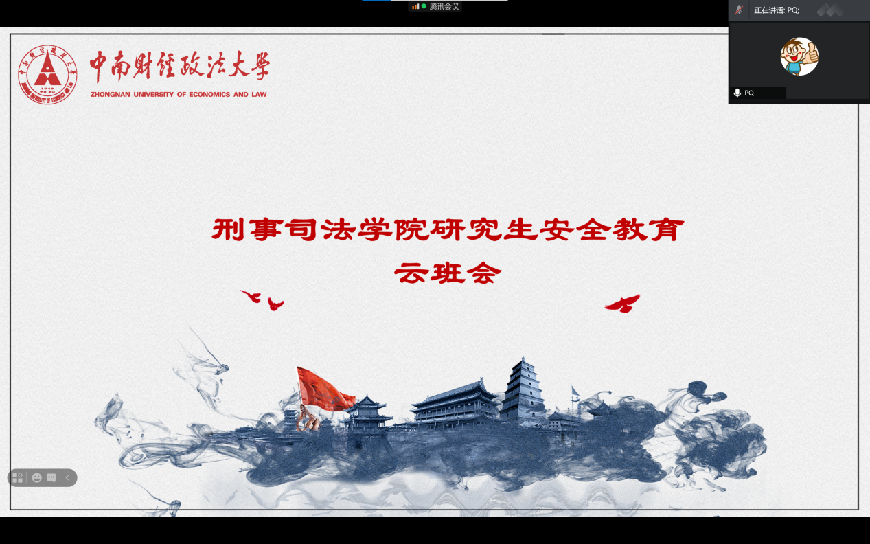 在“五一”假期即将到来之际,为进一步提高研究生安全意识,做好五一假期学生工作,4月30日上午,我院召开了“刑事司法学院研究生安全教育云班会”,会议由辅导员彭倩老师主持,全体研究生参加会议。