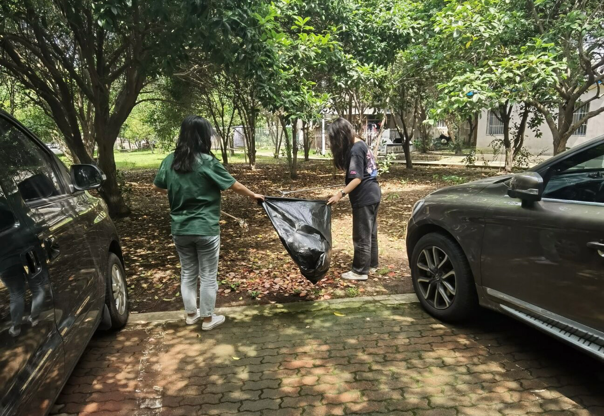 大家浩浩荡荡的从文溯楼出发,各自抵达所划分的小组区域后,仔仔细细地对每个角落进行清扫,不管是一颗小小的烟头,一片不起眼的纸屑,还是车底下的白色塑料垃圾,都被大家用铁钳一个个装进垃圾袋。第一轮清扫过后,各小组进行随机匹配抽查,检验成效,最后,在幼儿园门口进行集合,收集好最后的垃圾袋,集中投入垃圾箱,避免二次污染。