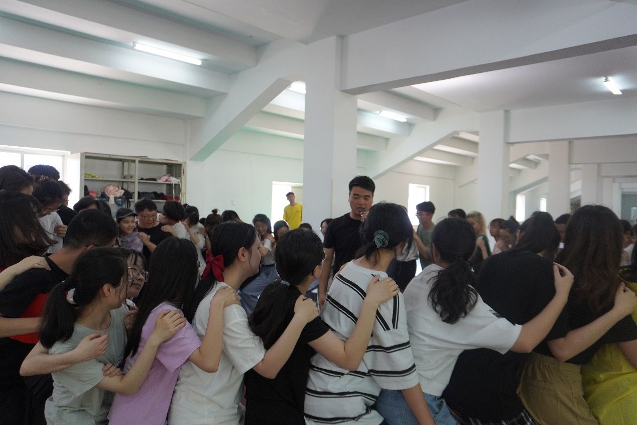 活动伊始,郭老师以“教练说”“萝卜蹲”“贪吃蛇”三个小游戏进行开场热身,让同学们逐渐进入活动状态。学习发展中心的同学们通过“教练说”“萝卜蹲”热身环节活动开筋骨,摩拳擦掌,对接下来的活动跃跃欲试。在“贪吃蛇”环节中,同学们通过猜拳决出排队的先后顺序,输者双手搭肩站在赢者身后,最后形成一个大圈,同学们在轻松愉快的氛围中互相捏肩。