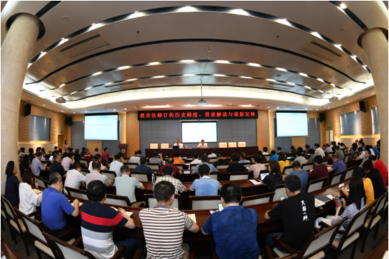 郭泽强从教育法修订的历史维度、背景解读与最新进展进行了深入浅出地解读。“《教育法》是教育的根本大法,是其他教育法规的‘母法’。”他表示,过去,中国的立法模式通常是先试点,随着习近平总书记强调改革须于法有据,立法将引领改革,先立法、后改革,即便是先行先试,摸着石头过河,也要先有法。此次《教育法》修订缘起于2018年全国教育大会的召开,集中体现了全面贯彻落实党的十九大精神、全国教育大会的精神、新时代党的教育方针和全面回应教育公平新问题。