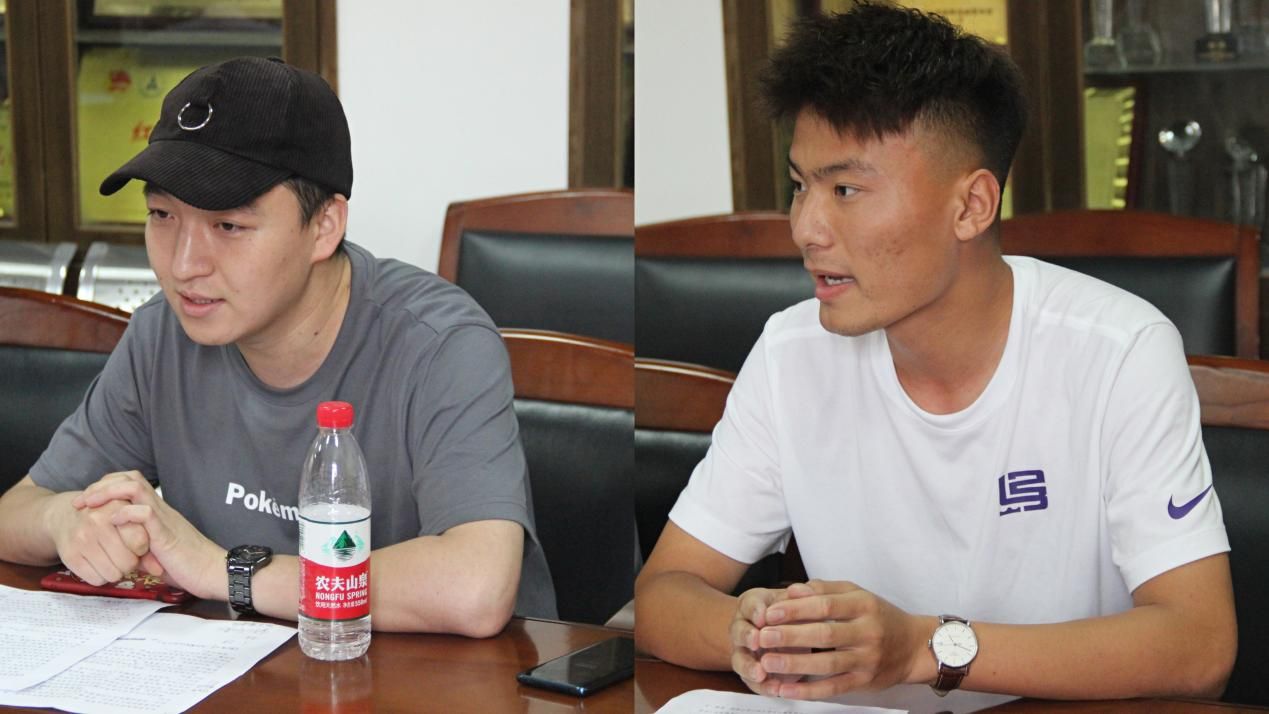 随后,硕士毕业生待就业代表庞万腾和本科毕业生待就业代表何一帆依次发言,向学校、学院对学生就业的高度重视和以人为本的帮扶工作致以衷心的感谢,并有信心通过自身努力和学院帮扶尽早上岸。