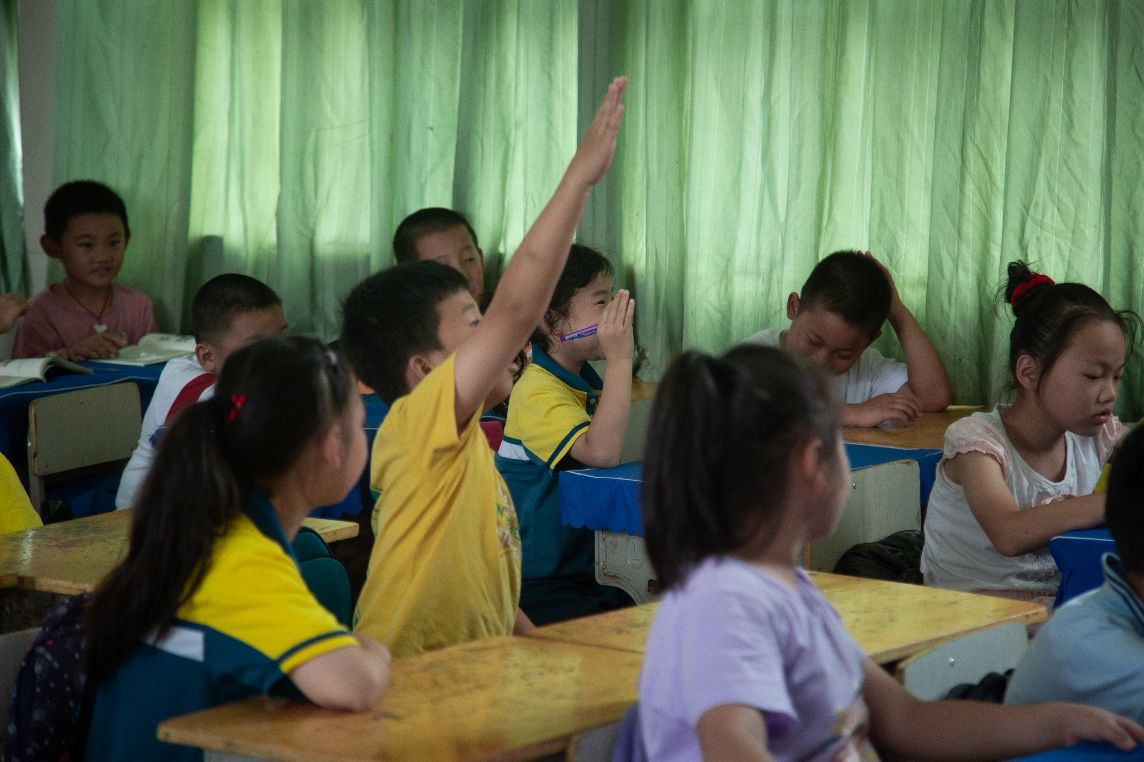 孩子们将志愿者围得水泄不通,但下课的铃声敲响,又到了离别之时。我们轻轻离去,不带走一片云彩。偌大的校园在上课的铃声响起后归于寂静,只见清风回荡的操场上,唯有五星红旗漫卷,恣意飘扬。