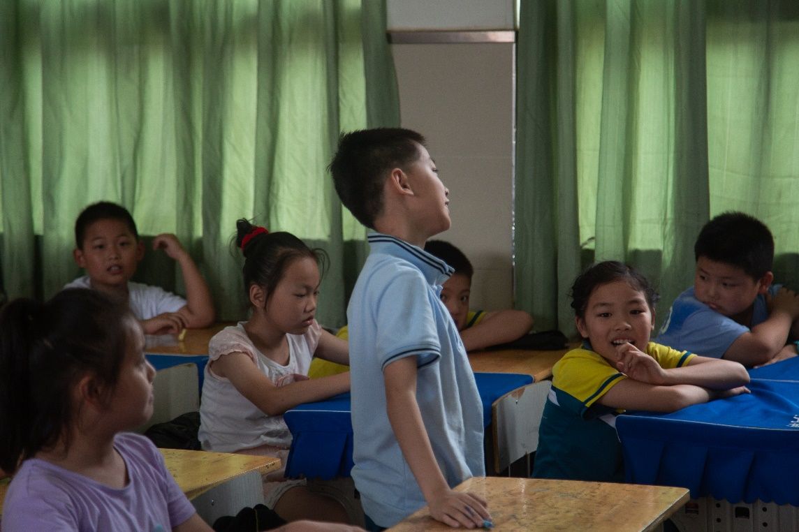 在动画欣赏完毕后,我们又开始了游戏时间。本次活动依然以广受好评的击鼓传花形式开展。孩子们兴致高涨,不无激动的将“花”传递给下一位同学。这回,接到“花”的幸运儿,将要向大家分享所熟知的中国革命者事迹?;萍坦?,八女投江,老家老人口中壮烈牺牲的空中骑士。为人所熟知的英雄,传唱于民间的英烈,在稚嫩的语句中缓缓走入大家思绪中。甚至让身为志愿者的我们,也学习到更多奉献者的故事,认识到这红旗飘扬的引领下,有众多尚未被人们所发现的无名英雄。谁言黄发不谙事?红旗党徽世代传。