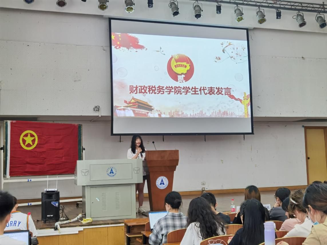 演唱结束后,财政税务学院学生代表葛竹欣发表了演讲,她提到:“为了让广大团干与学生深入学习,贯彻党的十九大精神与精神,高举中国特色社会主义精神,学校开办青年马克思主义培训班是非常有意义的。要用马克思主义以及习近平新时代中国特色社会主义思想作为契机,引领提高学生骨干的思想水平,充分激发创新能力与创造能力。”青年团员,要用短暂的青春去学习无穷的智慧,通过实践去完成向一名合格的马克思主义者的蜕变,为祖国的繁荣昌盛贡献自己的一份力量。
