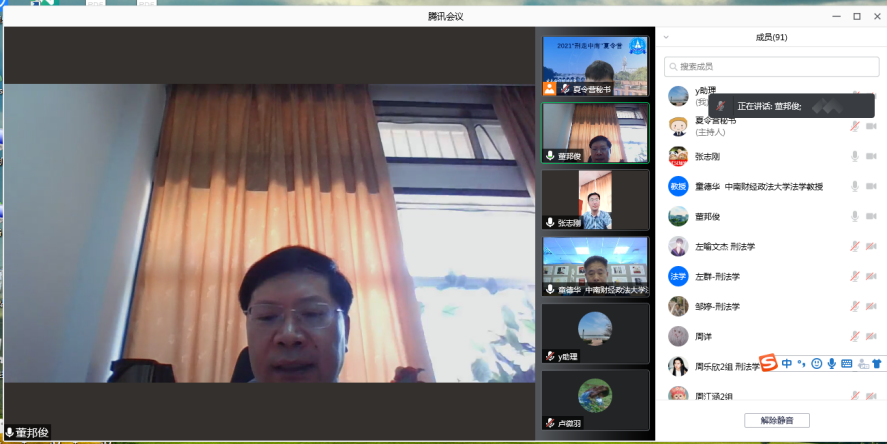 第一部分为开营仪式,上午9:00夏令营活动正式开始,由学院副院长董邦俊教授担任主持人。董院长对各位营员的参与表达了热烈的欢迎并对本次夏令营活动进行了简要的陈述。接着学院党委书记张志刚细致地介绍了学校、学院、学科的历史底蕴、发展沿革、师资力量、科研实力、学术平台、知名校友及研究生教育培养特色等方面的情况。稍后,由我院博士生导师童德华教授就本科阶段与研究生阶段刑法学科的学习理念、方式、方法的差别进行了分享,并诚挚邀请青年学子来我院深造学习。最后,我院刑法学科带头人、刑法学科导师组组长、博士生导师齐文远教授进行了简要的发言,他勉励青年学子要树立远大的理想抱负,敢于进行学术探索和学术创造,并预祝所有营员稳定发挥取得理想成绩。