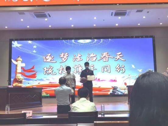 经过统分复核后,最终成绩揭晓:中南三队一辩杨沛冉同学荣获优胜辩手一等奖,法院二队二辩董小雪、法院三队一辩王思淼、获优胜辩手二等奖,中南三队二辩许浩宇同学、中南二队二辩彭子隽同学、法院二队一辩梁叶青荣获优胜辩手三等奖,之后由夏院长给获奖辩手颁奖。