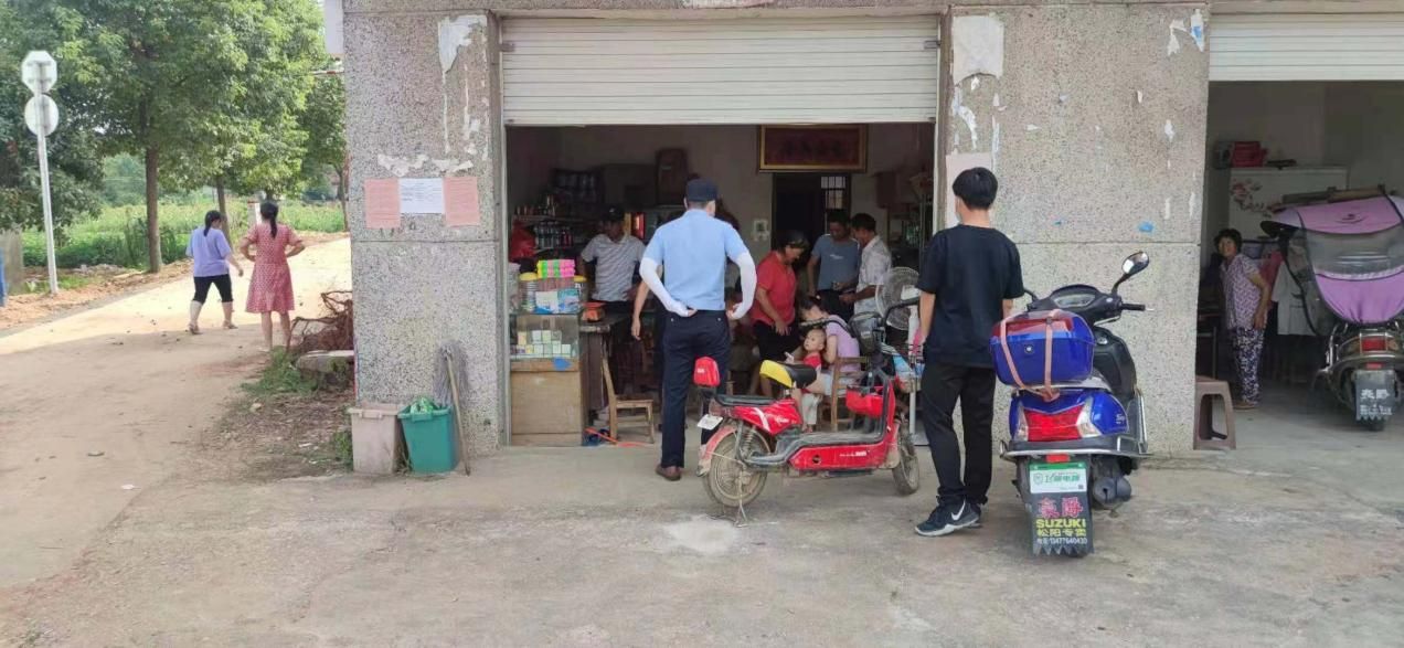 在梅川派出所实习的罗宇农、方云、伍元树和田小军同学则跟随民警们前往当地各社区登记居民疫苗接种情况和在疫情防控卡口检查过往的人员车辆。期间,他们还发现了仍然有群众聚齐并开展娱乐活动。他们上前对其进行了批评教育,解释了目前防疫工作的重要性并将群众劝离。