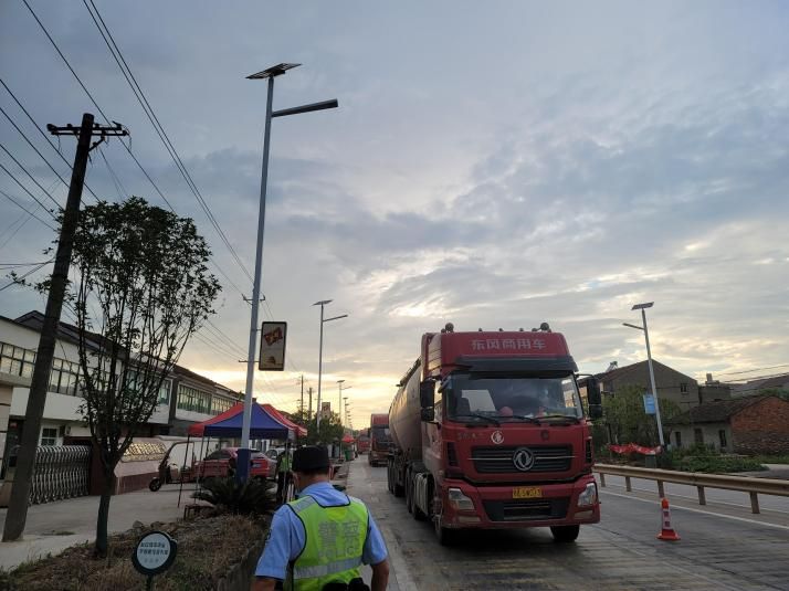 在余川派出所实习的伍益民和黄秋龙同学则同辅警一道设置卡点拦截进镇车辆并对进镇人员一一测温,若体温正常则放行通过。