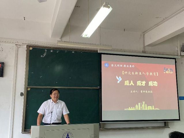 董邦俊院长围绕“成人、成才、成功”三个中心词给予新生学业规划的指导。董院长表示,“十年树木,百年树人”,首先我们研究生要具有“修身、齐家、治国、平天下”的思想品格,在生活中要注意磨练自己的品德和修养;其次,同学们在学习中要树立远大且明确的目标,不怕吃苦,不怕困难,才能真正成才;最后,作为青年人要关心国家的发展和社会的需求,坚持德智体美劳全面发展,提升自我,不负韶华,努力成为一个成功的人。
