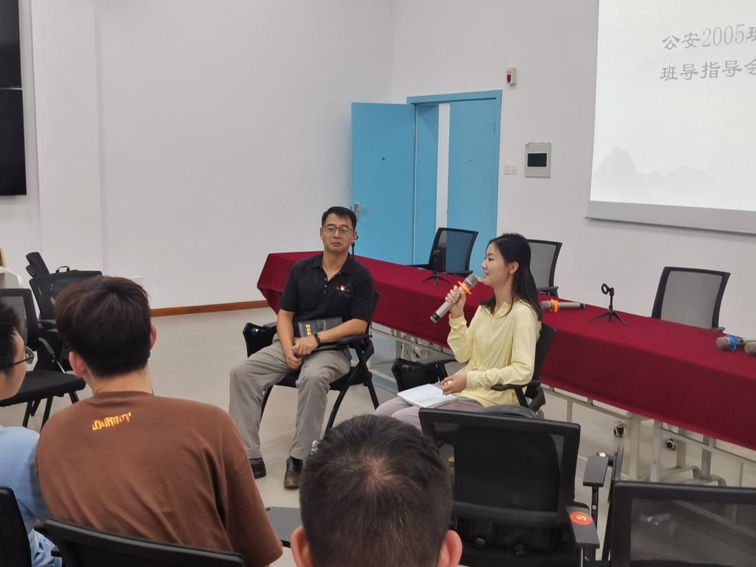 9月17日下午2时,公安2005班全体同学汇聚于文清楼405教室,同学们有序落座,学习委员陈恩钟做好活动考勤登记,其他班委分别负责布置教室和迎接班级导师进场。