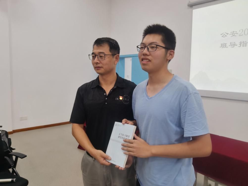 经验分享会结束后,郭院长高度肯定党萌师姐的经验分享,希望同学们能够以党萌师姐为榜样,在课程学习中多读书,多观察,多实践。为了感谢党萌师姐参与本次班会分享学习经验,郭院长特别赠予其著作《正当防卫制度研究的新视界》。