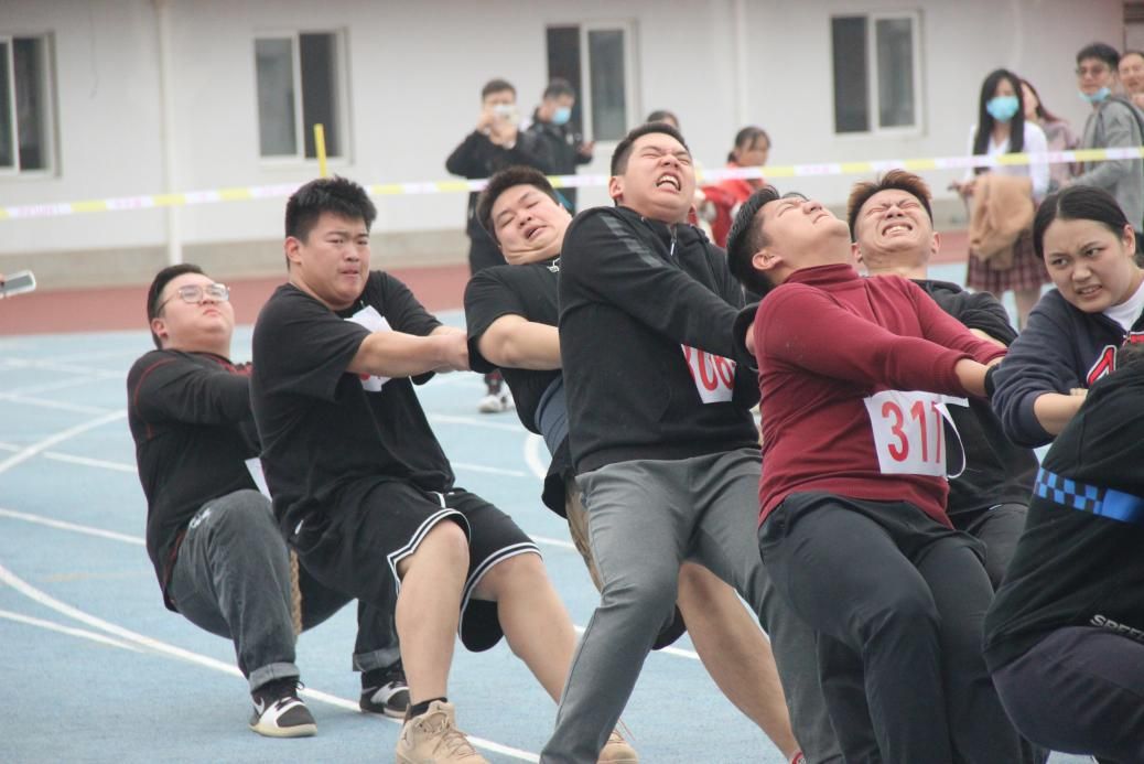 在时代列车的比赛过程中,每个同学将自己的手搭在前一个同学的肩膀上,口中齐声喊着“左右左,左右左”,节奏统一,脚步快而不乱,一路无阻,顺利冲线。而在激动人心的拔河比赛中,未能站上赛场的同学们卖力加油鼓劲,声势浩大,也让全校师生见证了刑司人强烈的集体荣誉感。