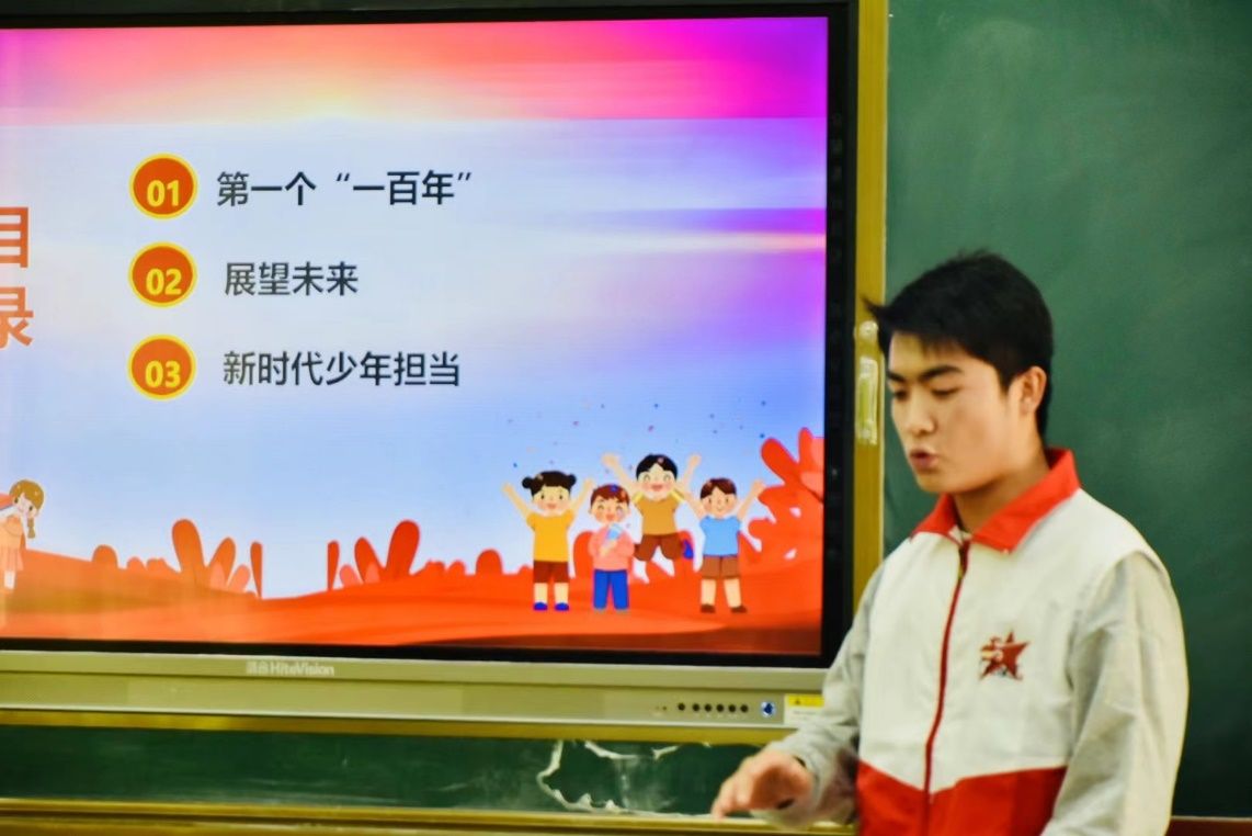 课堂开始前,走廊穿梭玩闹的孩子们展现着少年的活力与朝气。而当第一部分课堂“第一个一百年”伴随着主讲人提出第一个问题“两个一百年是什么”开始时,小朋友们却又立刻全身心参与课堂活动中,伴随着“改革开放是什么时候开始的”,“对于脱贫攻坚的伟大成绩你都有什么了解”等一系列问题的提出,以及主讲人对于建党百年间所取得的伟大成就的讲述,课堂气氛十分火热,讨论声,抢答声,不绝于耳。虽然答案中错对相间,但是从小朋友们的踊跃发言与讨论中不免能感受到他们内心深处对祖国日渐强盛的骄傲与自豪,对党百年光辉历程的向慕与崇敬。